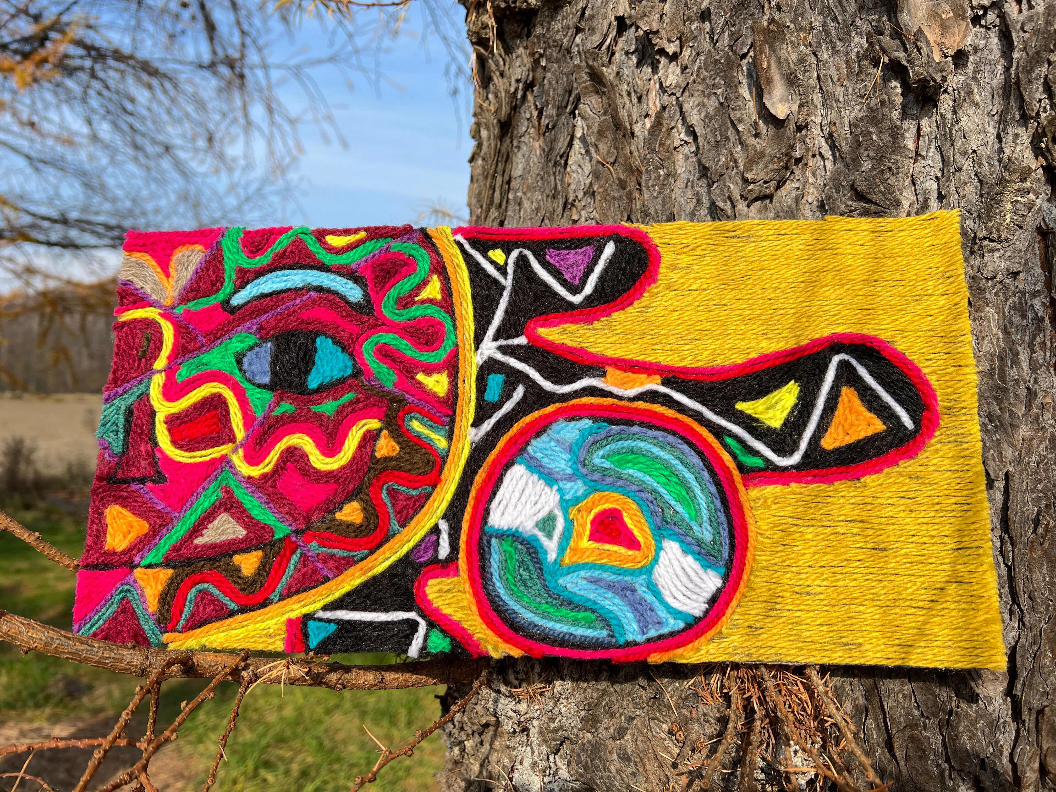 ネアリカ(Nierika)とは、メキシコのシエラ・マドレ山脈一帯に居住するウイチョル族のシャーマンの文化や、トランス状態になった時の世界を毛糸絵のこと。「オタマティブアート」は、ホーリーバジル農家おたまが、日頃、自然界からいただいた言葉にならない情報を、ネアリカの独特なシャーマン感を活用して、ノーマインドで絵に落とし込んでいる作品です。